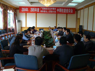 检查组在学院教八楼会议室召开了2004、2005年度“广西百名中青年学科带头人资助计划”资助对象及桂林工学院地质工程与地质资源创新团队建设工作座谈会。阮副院长首先代表学院对区教育厅检查组的到来表示欢迎,介绍了我院人才小高地建设情况,并希望来自各高校的专家们对桂工的人才小高地建设工作多加指导。来自广西师范大学、桂林电子科技大学、桂林工学院、桂林医学院、桂林师专等五所院校的15名获得该项目资助的人员做了中期检查相关内容的汇报;雷良奇专题汇报了我院地质工程与地质资源创新团队建设工作方案及目前各项工作的进展情况。陆燕处长就大家普遍关注的经费少及项目在实施过程中遇到的各种问题提出了指导性的意见。区教育厅下拔的资助经费主要是起“酵母”作用,通过有限的经费资助,辐射、带动一批高校做相应的配套经费的投入,从而促进区内高校师资队伍建设和人才水平的提高。她还强调,获得“学科带头人资助计划”资助更是一种荣誉,为各类人才争取更高级别的人才计划和人才奖励,提供有利的条件。贺争平组长对我院人才小高地的建设工作给予了充分的肯定。