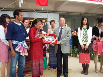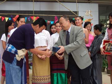 异国他乡情意浓,欢歌笑语乐尧天。4月15日下午,春和景明的屏风校园掩藏不住勃勃的生机。我院大学生与泰国留学生在教九楼大厅欢聚一堂,共同欢度泰国新年——宋干节。古风古韵的泰国传统民族舞蹈,赢得我院大学生们的阵阵掌声。学院党委书记阳国亮出席了联欢活动并发表了重要讲话,带来了学院领导的亲切关怀与温馨的祝福。随着中泰民族文化的相互交融,两国学子载歌载舞,沉浸在节日的欢乐气氛中。 本次活动使身处异国他乡泰国留学生们,再次亲身经历和感受到来自中国人民的友谊及学院大家庭的温暖,进一步增进了我院学生对泰国的了解和友谊,对于促进我院与泰国的合作办学具有积极的推动作用。正是:屏风含笑舒清景,室有春风聚太和。
