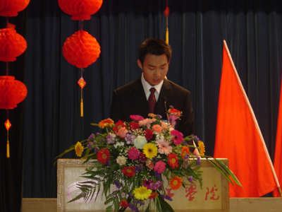 学院第十五届院学生会文艺部部长王松同学发受大会委托向全院同学发出倡议书,学院团委书记江云清老师对新一届学生会提出了要求,其中他着重强调了学生会要继续改进工作方法,增强服务学生的观念。最后,由学院学生工作处副处长李君老师致本次大会的闭幕词。