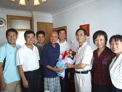9月18日,学校党委书记赵艳林,副书记、纪委书记赵君在学校离休老干部柳林同志94岁寿诞之际,为他送上了芬芳浓郁的鲜花、精美的生日蛋糕、慰问金并致以深情的生日祝福。校办、组织部、离退处等部门负责人随同慰问。 来到柳老家里,挂在墙上的一幅书法作品特别引人注目,那是柳老专门为国庆六十周年书写的“饮水思源”四个大字,充分表达了一个老党员对党、对人民的热爱和对中国特色社会主义事业的坚定信心。赵艳林书记握着柳老的手深情地说:“你们老一辈桂工人艰苦创业,勇于开拓,打下了学校发展的坚实基业,您为学校发展所做出的突出贡献,学校全体师生员工将永远铭记”。他代表全校师生感谢柳老离休后一如既往关心和支持学校的建设与发展,特别是感谢柳老对学校“两申”工作和新校区建设工作的鼓励和指导,并代表全校师生员工衷心祝福柳老生日快乐,健康长寿。柳老向校领导和师生们对自己的关心表示衷心感谢。在交谈中他情不自禁地回忆了自己早年参加革命的经历,谈了自己对党、对国家、对社会主义的感情和认识。他说:“我是一个从旧社会中走过来的人,也是新中国六十年的见证人,跟着党闹革命一路走来,亲身参与了新中国的伟大社会主义建设,亲眼目睹了国家六十年来日新月异的发展和人民生活水平的日益提高,我深深地感受到今日幸福生活的来之不易,也深深地感受到没有共产党就没有新中国”。他希望学校一定要努力为国家和人民培养出更多更好的高级人才,把我们的祖国建设得更加美好。赵君副书记向柳老汇报了近年来学校取得的喜人成就:申请更名大学获得圆满成功,博士学位授权点也已经开始建设,新校区顺利入住万名师生,MBA学位授予权的获得,学科建设水平的大幅度提升…… 柳老欣慰地笑着说:“好,你们做得好啊!”他还关切地说:“一定要抓好学风、校风,抓好大学生思想政治教育工作,这是我们培养好人才、办好人民满意大学的关键。”赵艳林书记和赵君副书记表示:“我们一定不会辜负您的期望,继承和发扬好老一辈优良的传统,把我们的火炬和红旗一代代传下去,把我们的学校建设得更强、更好,为国家和人民不断做出新的更大的贡献。”