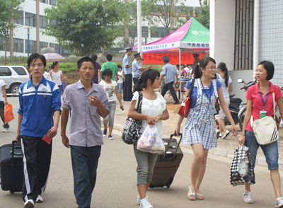 九月的桂林,虽已入秋,天气仍然炎热。然而,炎热的天气并没有阻隔我校青年志愿者的服务热情。为了方便新生报到,志愿者们活跃在迎新的第一线。无论是在火车站,还是在各学院的迎新点;无论是在食堂还是在学生宿舍,处处可以看到他们的身影。 志愿者们用灿烂的微笑、周到的服务给予了新生和家长们无微不至的关怀,及时解答他们提出的问题,帮助他们解决困难。就连平时怕晒黑的女生都坚守自己的岗位,男生则变得十分绅士。如果说白天的志愿者,考验他们的是体力,那么夜间的志愿者,考验他们的更多的是毅力。他们说,要以自己的努力,让每位来报到的新生都能感受到学校的温暖。青年志愿者们以自己的实际行动充分展现了桂工学子的青春风采。家长们对他们啧啧称赞:“桂林理工大学的学生真是好样的”。