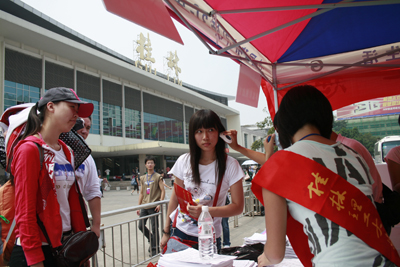 迎新志愿者热情迎接新生到我校火车站接待点