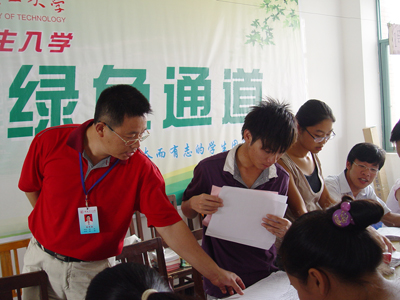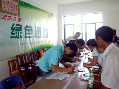 14日上午,校长张学洪,党委副书记赵君、王赣华,副校长陈学军等学校领导来到新生“绿色通道”现场接待点了解情况,鼓励寒门学子努力学习,乐观向上。并要求学生工作处和各学院要切实加强对家庭经济困难学生的思想政治教育和心理健康辅导工作,在生活、学习等方面给予他们特别的关心和帮助,引导他们树立信心,克服困难,努力学习、健康成长。 据悉,我校为切实保证经济困难新生顺利入学,成立了以校长张学洪为组长的学校新生资助工作领导小组。统一部署、协调2009级新生的各项资助工作。同时,领导小组要求各单位、各有关部门要进一步统一思想,提高认识,以高度责任感和神圣使命感,扎实做好新生入学“绿色通道”及有关资助工作。对被录取入学、家庭经济困难的新生,学校一律先办理入学手续,入学后再根据学生的家庭经济贫困状况,落实学校的有关资助政策,确保对家庭经济特别困难学生做到“应助尽助”,解除家庭经济困难新生及其家长的后顾之忧。 另据了解,为有效落实“绿色通道”政策,我校在向新生寄发录取通知书时,同时附寄自治区教育厅下发的《高等学校学生资助政策简介》宣传手册和桂林理工大学国家助学贷款宣传材料,确保每个新生都能够全面详细了解资助政策体系的具体内容。新生在收到录取通知书的同时,也会收到一份来自国家和学校的承诺与爱心。