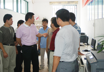 9月13日上午,张学洪校长,党委副书记赵君、王赣华等学校领导顶着炎炎烈日来到我校雁山校区对迎新工作进行检查指导。 在勤工助学服务超市里,张校长满意地点点头。他说:“这个商店办得很好,我们勤工助学部的理念就是‘一切为了学生’,我们做任何工作,办任何活动都是为了方便师生,让我们的老师、同学在最方便的环境中工作、学习、生活。”据勤工助学服务超市负责人介绍,这间超市共占地130平方米,一共可为我校学生提供70-80个勤工助学岗位。在凉爽的勤风书店,勤工助学的学生向张校长一行介绍说:这里的书几乎都是发动全校同学积极募捐或是低价收购得到的。听到这里,校长对在场的人员说道:“我们办书店是为了方便贫困生。”随后还认真询问了书本的价钱,并称赞他们的工作服非常整齐。 在勤工助学文体超市,手拿篮球的校长仿佛又回到了美好的大学时代,从他微妙的表情变化和幸福的眼神中我们似乎能够感觉到他回忆的甜蜜。稍后,他顿了顿,严肃的说道:“我们办商店是为了方便同学,我们要时刻记着是为同学服务,所以价钱一定要合理,确保同学们能够在这里买到物美价廉的体育器材”。 走出文体超市,张校长一行又视察了各学院的报道点、绿色通道、学费收缴处等地的工作情况。走在路上,他特别强调:一定要以学生为本,让学生的满意、家长满意,社会满意才是我们的宗旨。