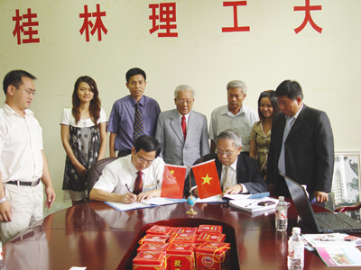 6月23日上午,学校校长赵艳林会见了到我校访问的越南梁世荣大学董事长丁家训率领的代表团。国际教育学院院长陈文乾等参加了会见。 赵艳林校长对丁家训董事长一行表示热烈的欢迎。他向越南客人介绍了学校的基本情况和近年来取得的成绩。丁家训董事长介绍了梁世荣大学的基本情况,并表示了合作的意愿。双方就教学、科研、学生交流等问题进行了交流探讨,签订了合作备忘录和相关协议,两校将共同培养越南学生。