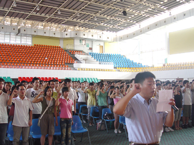 6月6日上午,我校第一期毕业班学生党员培训班在体育馆举行开班典礼。开班典礼由党校副校长、教务长、党委组织部部长陈贵英主持。学校党委副书记张学洪,党校校务委员、副教务长、党委学工部部长熊英,党校校务委员、副教务长、党委组织部副部长李军朝以及各系(院)党总支副书记、直属党支部书记出席开班典礼。 典礼会上,由学校党委组织部副部长李军朝领誓,1000多名毕业班学生党员在鲜红的党旗下举行了庄严的入党宣誓和重温入党誓词仪式。 开班典礼结束后,张学洪副书记从牢记党的宗旨、尽快转换角色、加强自身修养等方面为毕业生党员作了《加强党性锻炼,永葆共产党员先进本色》的专题辅导报告。 本次培训采取集中授课、座谈讨论、实践锻炼相结合的方式进行,培训时间为二天。