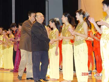 11月26日晚7:30,在学院体育馆3楼,一阵喧天震响的迎宾锣鼓,催开了我院迎评文艺晚会《走向辉煌》节目预演的帷幕,学院党委书记阳国亮、副书记张学洪,各系、部负责人和部分师生观看了演出。 参加此次预演的节目共有14个,分别是《迎宾锣鼓》、歌伴舞《好日子》、音诗画《山谷的风》、舞蹈《追求》、服饰艺术《春风桃李》、舞蹈《花开时节》、舞台剧《风华正茂》、舞蹈《出水莲》、京韵京腔《沁园春 雪》、舞蹈《热切向往》、葫芦丝独奏《美丽的金孔雀》、舞蹈《千红》、男声四重唱《海港之夜》与《森林水车》、舞蹈《走向辉煌》。 预演在一曲《同一首歌》中宣告成功结束,学院党委书记阳国亮、副书记张学洪走上舞台与演员们一一握手致以亲切慰问。全体演员表示要再接再厉,在距正式演出仅剩一天的时间里,找差距、补不足,努力完善、精益求精,确保在正式演出中充分展现我院师生的文艺水平、综合素质和精神风貌。