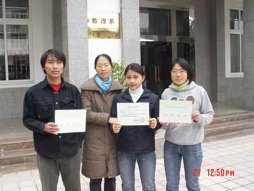 我院在2004年参加全国数学建模比赛中再创佳绩,报名参赛共12个队(36人),获全国一等奖1个队,全国二等奖4个队,广西区一等奖6个队(其中含获全国一二等奖的5支队),广西区第二、三等奖4个队,获奖比例名列全广西高校第一!参赛的同学都是经过数学模型课程的选修学习和暑假数模培训班的刻苦培训后层层选拔出来的,在此,我们向他们表示热烈的祝贺,也向全体数模组的指导教师表示祝贺!