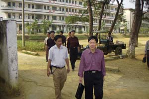 南圩中学陆献运校长、张瑞怀书记,桂工支教队员们早就在门口等我们了,大家热烈握手,像久未见面的老朋友。这一期在隆安支教的我院教工共有5名,他们是:于尔佐,郑春华,李辉,胡国彪,陈发杰,后两位是南宁分院派出的。队长于尔佐不在,担任县委常委、副书记的他此时正在县里参加常委扩大开会。