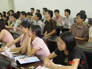 2004年新教师欢迎会8月27日上午在体育馆附楼501召开。会议由党委组织部部长、人事处处长赵君主持,他依次介绍了到会的校领导、各系部处党政主要负责人和今年引进的新教师。