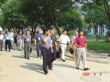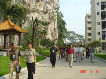 专家组在结构大厅校园小路上