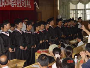 今年,共有1172名成人教育学院学生毕业,毕业生中,49名同学获得优秀毕业生称号;4名同学被评为2002—2003学年度“三好学生”,学院为他们颁发了奖状和奖金。毕业典礼开始前,师生们纷纷在教9楼前合影留念。