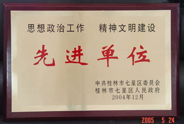 5月24日,在“高新七星区2004年度三个文明建设总结表彰大会”上,我院喜获“思想政治工作 精神文明建设”先进单位、军警民共建先进单位、双拥工作先进单位、“社会治安综合治理 普法依法治理”先进单位、人口与计划生育先进集体、爱卫工作先进单位、群众文化体育工作先进集体等7个奖项。同时获得“思想政治工作 精神文明建设”先进个人、军警民共建先进个人、双拥工作先进个人、群众文化体育工作先进个人等4个奖项。