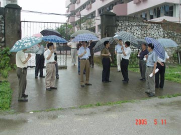 汇报会由桂林工学院副院长李祥清同志主持,桂林工学院党委书记阳国亮同志致欢迎词,博文管理学院常务副院长郎耀秀同志从办学基础设施建设、办学环境改善、师资队伍建设、教学设备与图书、教学工作准备、招生工作和学生管理工作等几个方面进行了汇报。随后,检查组冒雨对校园环境和正在施工的办学条件改造工程进行了现场检查并查阅了有关材料。