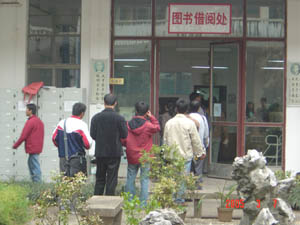 图书馆借阅处排起长队