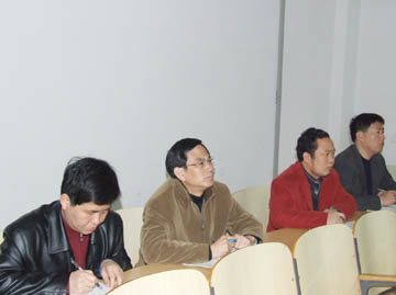 赵艳林院长(左二)与相关部门负责人在认真听课