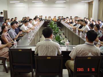 9月16日下午,在中秋佳节来到之际,学院在党校教室举行2004至2005学年度新教师欢迎会,欢迎新教师的到来。 本次会议受到学院领导的高度重视,学院党委书记阳国亮,学院党委副书记、院长赵艳林,学院党委副书记、纪委书记唐善茂、学院副院长李祥清等在家的学院领导出席了会议,各院(系、部)和各职能部门主要领导也参加了会议。 欢迎会由学院党委副书记、纪委书记唐善茂主持。唐副书记首先致欢迎词,对各位新教师的到来表示热烈的欢迎,随后将学院领导和各院(系、部)及各职能部门主要领导向新教师一一介绍,并将到会的新教师向大家一一介绍。赵艳林院长在会上做了热情洋溢的讲话,他带领大家回顾了学院五十年的辉煌历史,介绍了学校的现状与未来发展规划,对新教师提出希望与要求,并祝新教师工作顺利,节日快乐。电计系副主任程小辉副教授代表老教师做了发言,畅谈了老教师到学院工作的感受体会和学院良好的科研教学环境。随后欧东新博士代表新教师做了发言,表示要在学院党委的领导下,努力工作、开拓创新,为学院发展做贡献。会议结束前,阳国亮书记向新教师介绍了学院今年的招生情况和学院的发展目标,和大家一起展望了学院的美好前景,向新教师提出了诚挚殷切的期望,并祝新教师节日快乐。 最后,在温馨的音乐声中,学院领导一一给新教师发放了月饼,为新教师及其家人带去了真挚的节日祝福。