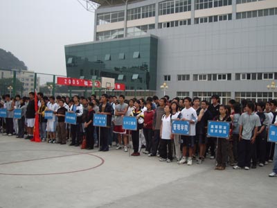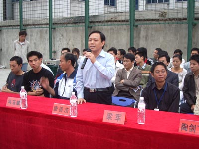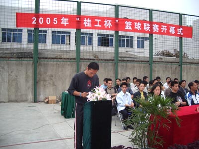 伴随着阵阵掌声,2005年“桂工杯”篮球联赛开幕仪式在主持人的开幕词中拉开了序幕。在仪式上,学院党委唐善茂副书记对比赛寄予了深切希望,他指出:“群众性体育,要有群众基础”,他也对我校篮球的未来进行了展望,“希望我校球队能出现在CUBA的赛场上,这需要时间,但通过努力,我们一定能实现这个目标。”最后,唐善茂副书记也对本次比赛提出了要求,他说:“有这么多的队伍参加是可喜的,希望运动员能把桂工精神良好的风貌展现在篮球场上。”唐善茂副书记的鼓励让所有参赛队伍信心倍增,会场掌声不断。