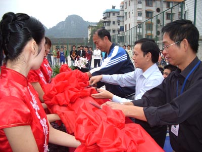 热烈气氛中,唐善茂副书记、学工处梁军处长、冯玉斌主任进行了大赛的剪彩仪式,宣告桂林工学院2005年“桂工杯”篮球联赛开幕仪式的圆满结束。
