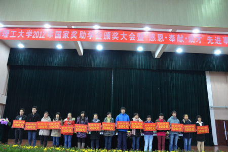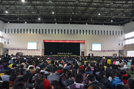 12月28日下午,学校2011—2012年度国家奖助学金表彰大会暨“感恩·奉献·成才”先进事迹报告会在雁山校区体育馆隆重举行。学校党委副书记王赣华出席会议,学工处、校团委负责人,各学院党委副书记、辅导员、获奖学生及学生代表等参加了此次大会。会议由学工处副处长张雷主持。 大会在庄严的国歌声中拉开帷幕。首先,学校学工处处长熊英介绍2011—2012年度国家奖助学金评审情况,随后,在前排主席台就坐的领导为国家奖助学金获得者颁发了奖金。 王赣华副书记代表学校党委、行政向全体获奖学生表示热烈的祝贺!向无私奉献、辛勤付出、关心支持学生资助工作的广大教职员工表示崇高的敬意和衷心的感谢!并对广大同学提出了五点希望:一是坚定理想信念,树立远大志向,在建设中国特色社会主义事业中奉献才智;二是勤奋刻苦学习,掌握扎实本领,在建设创新型国家中勇挑重担;三是塑造人文情怀,培育宽广胸襟,在弘扬中华优秀文化中贡献力量;四是坚持深入基层,开展社会实践,在服务经济社会发展中创造业绩;五是磨砺精神品质,锤炼道德修养,在战胜困难和考验中成长成才。 会上还举行了获奖助学金学生宣誓仪式,土木与建筑工程学院建筑工程专业2008-1班鄢阳、管理学院房地产经营与管理2011-2班廖璐、化学与生物工程学院化学工程与工艺2012-1班郑帅分别代表获奖学生作了先进事迹报告。 会议结束后,举行了“蒲公英爱心基金”募捐仪式。据悉,本次募捐所得将作为“蒲公英爱心基金” 用于资助校内外需要帮助的贫困学生。