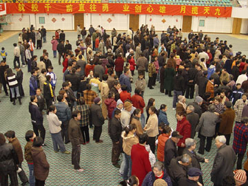 农历大年初一,虽然天气微寒,但学院体育馆三楼大厅内却是一派暖意融融。 院内教职员工及其家属、留校过年的学生纷纷来到这里,参加一年一度的春节团拜会。“年年岁岁花相似,岁岁年年人不同”,今年的春节团拜会在宽敞、明亮、气派的体育馆大厅举行,气氛更胜以往,除节日的欢乐外,在教职员工心中平添了一种自豪感。人们相互握手,互致问候,整个大厅一派喜气。
