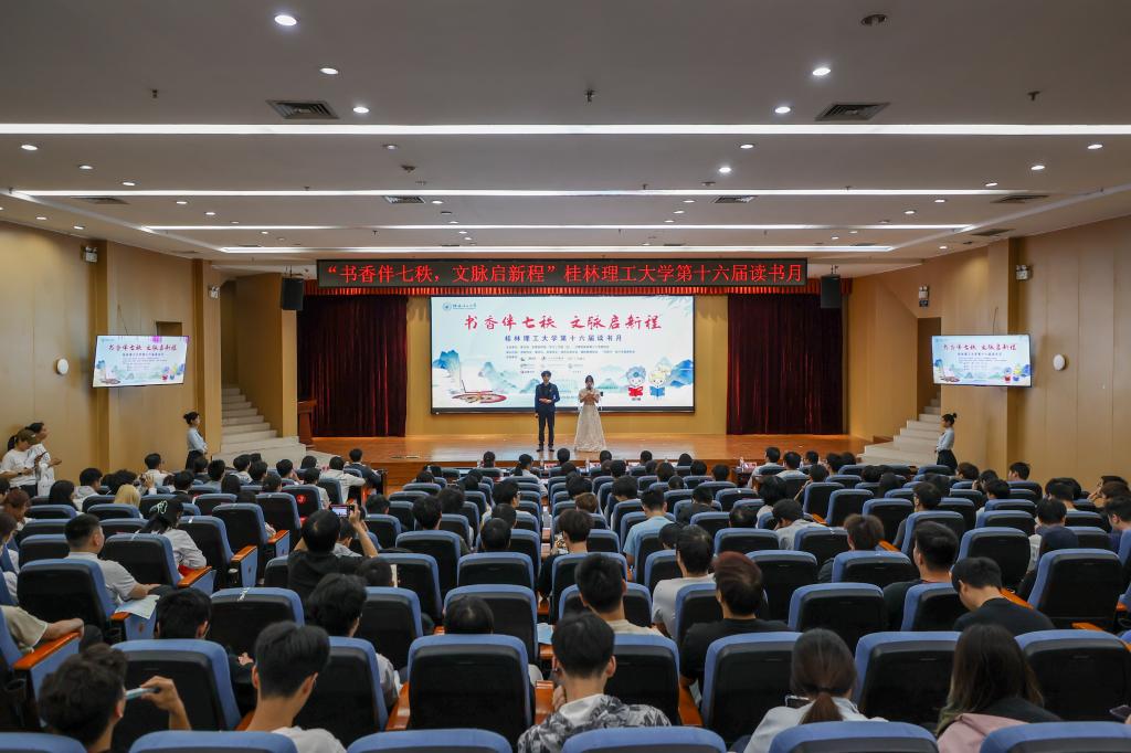 4月23日,学校第十六届读书月启动仪式在雁山校区图书馆报告厅举行。学校党委常委、副校长罗盛锋出席开幕式并讲话。宣传部、学工部、校团委、图书馆相关负责人及师生代表近200人参加开幕式。