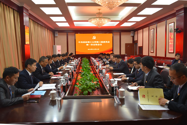 12月31日下午,新选举产生的中共桂林理工大学第三届委员会召开第一次全体会议。会议应到会党委委员25名,实到会党委委员25名。李国忠同志受第三次党代会主席团的委托主持会议。