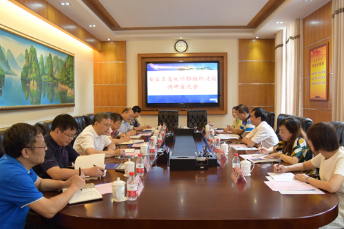 8月24日上午,自治区科协主席赵艳林,学会部副部长韦克广及桂林市科协主席俸文英等一行5人来我校开展高校科协组织建设调研。广西师范大学副校长苏桂发、我校副校长陈学军,两校科技处处长,漓江学院和博文管理学院主要负责人参加了调研座谈。