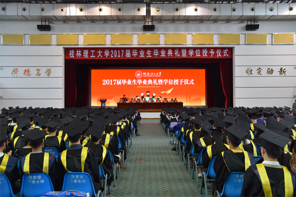 6月22日,我校分别在雁山和屏风校区隆重举行2017届毕业生毕业典礼暨学位授予仪式。校领导张学洪、解庆林、王赣华、孙宁、陈学军、梁福沛、张劲松出席毕业典礼暨学位授予仪式。典礼由学校副厅级调研员张劲松主持。