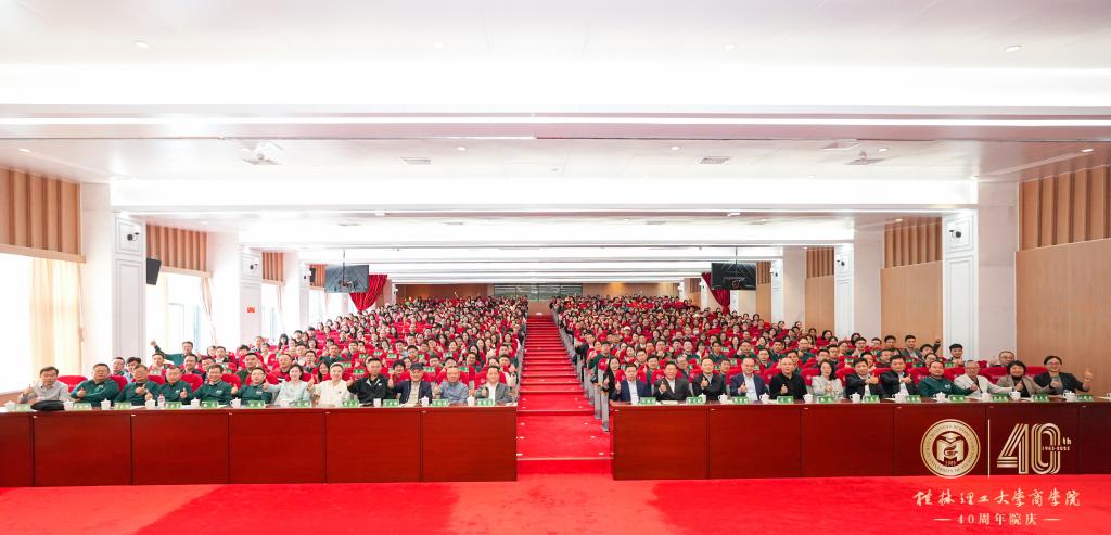 11月9日,我校商学院建院40周年高质量发展大会在屏风校区举行。学校党委常委、总会计师曾繁荣,广西民族大学党委副书记、商学院校友邓国彬出席大会并致辞。兄弟院校代表,学校校友与国内合作处主要负责人,学院老领导、老教师、校友及师生代表400余人欢聚一堂,共同庆祝商学院建院40周年。