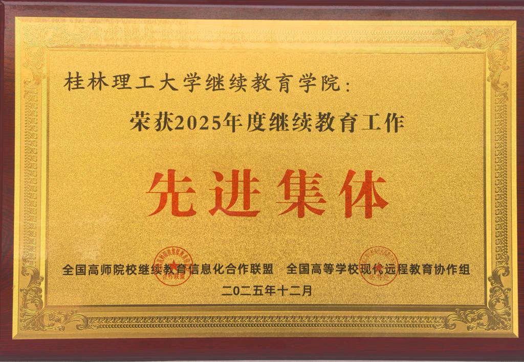 12月15日,全国高师院校继续教育信息化合作联盟年会在桂林召开。我校继续教育学院荣获“2025年度继续教育工作先进集体”称号。