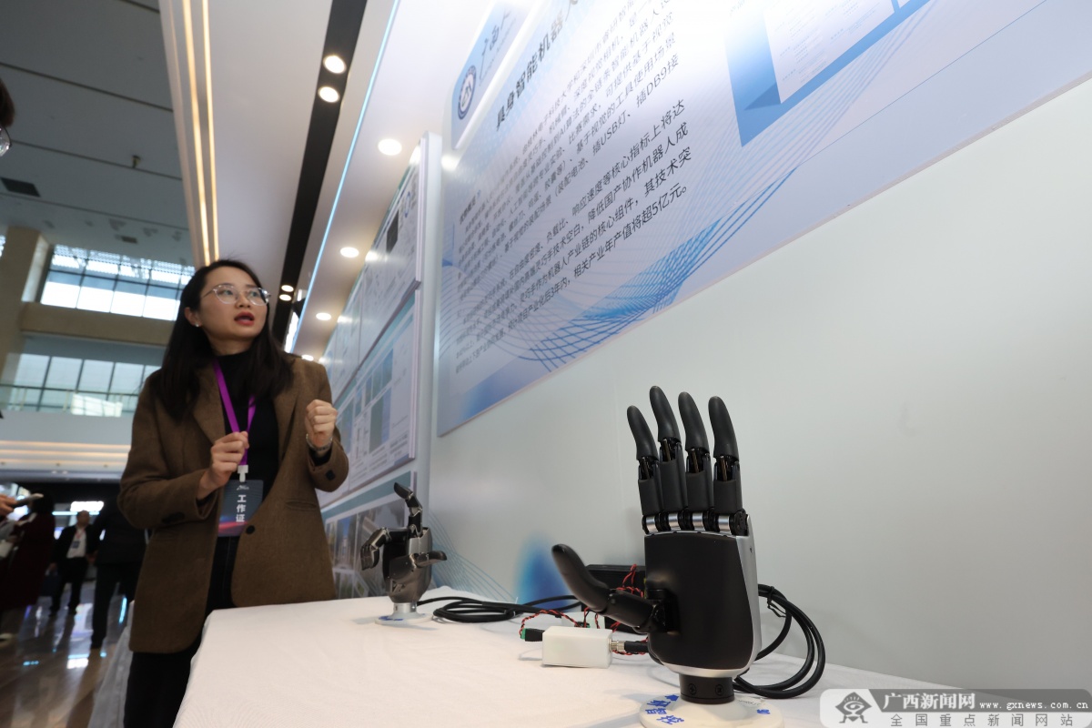 2025“A超之夜”成果展上,广西人工智能学院展出的具身智能机器人灵巧手操作系统。广西云-广西日报记者 梁凯昌