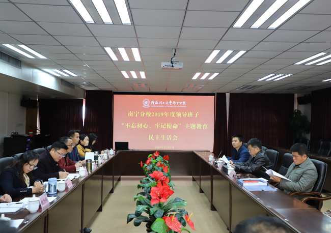 12月4日上午,南宁分校2019年度领导班子“不忘初心、牢记使命”主题教育民主生活会在空港校区行政楼416会议室召开。学校党委副书记、副校长吴志强到会指导。南宁分校校长助理、组织部、党办主要负责人列席会议。会议由南宁分校党委书记周国桥同志主持。