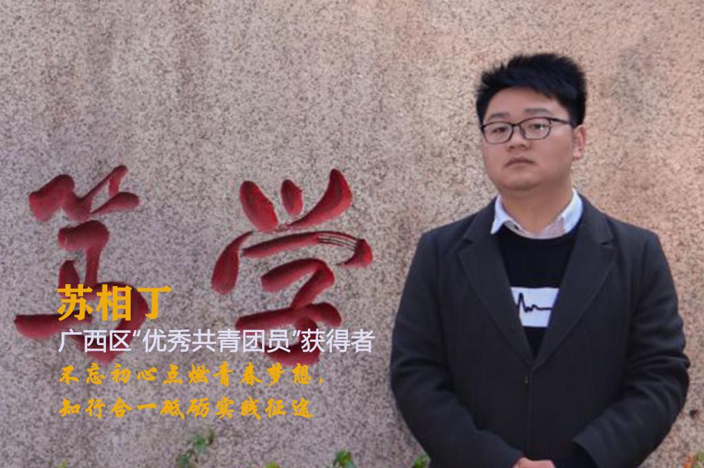 苏相丁,男,中共党员,商学院房地产开发与管理专业2016-1班学生,目前为桂林理工大学第22届研究生支教团成员。曾先后荣获评广西区2018年“优秀共青团员”,桂林市2017年度“优秀共青团员”,校级“优秀共青团员”等20余项个人荣誉和30余项科技赛事奖项。