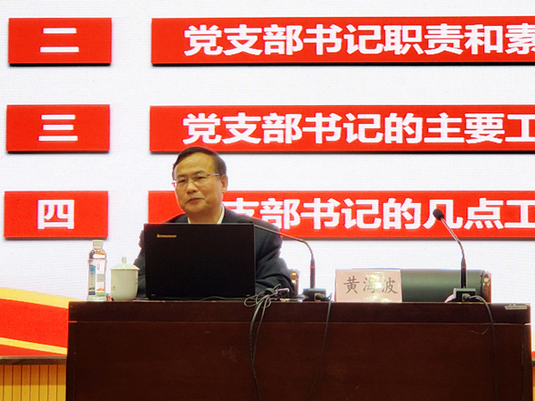 培训班上,广西师范大学党委常委、统战部部长、督查办主任、机关党委书记黄海波作了题为“党支部书记的工作方法与艺术”专题辅导报告,解读了党支部的基本工作规程、党支部书记的职责和素质要求,并对党支部书记的主要工作方法和艺术提出了相关建议;桂林电子科技大学龙海平教授作了题为“不忘初心再出发 牢记使命勇担当——学习习近平总书记关于‘不忘初心、牢记使命’重要论述”专题辅导报告,重点解读了习近平总书记关于“不忘初心、牢记使命”的八次论述以及中国共产党人初心和使命的内涵,引导广大支部书记不忘高等教育初心,牢记立德树人使命;学校党委常委、组织部部长邓国彬作了题为“深入推进‘不忘初心、牢记使命’主题教育,提升党支部组织生活质量”的专题辅导报告,重点解读了严肃党内政治生活的重要意义,分析了当前党支部组织生活制度执行过程中存在的问题,并就如何结合主题教育,切实提高党支部组织生活质量提出了工作要求;学校党委常委、统战部部长、马克思主义学院院长邱杰作了题为“学习习近平总书记关于教育的重要论述”专题辅导报告,从党的教育方针的本质要求以及新时代教育的初心使命切入,引导大家深学勤思笃行,切实增强履职尽责的能力;学校公共管理与传媒学院党委书记陆平作了题为“弘扬湘江战役精神,走好新时代长征路”专题辅导报告,从湘江战役的主要背景和精神内涵方面讲述了如何弘扬湘江战役精神,走好新时代的长征路。学校派驻灌阳县贫困村党组织的六位驻村第一书记与各位(新任)基层党支部书记面对面分享了他们在扶贫工作中的初心使命,责任担当。艺术学院党委进行了“知史爱党爱国 坚定理想信念”的主题党日示范活动,通过主题情景、现场展示、总结点评等形式,为各基层党支部开展形式多样的组织生活起到了良好的指导作用。