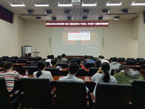 为深入贯彻学习习近平新时代中国特色社会主义思想和党的十九大精神,深刻把握新时代党的建设总要求,切实提高学校(新任)基层党支部书记的履职能力,结合“不忘初心、牢记使命”主题教育相关工作要求,11月7日至8日,学校在雁山校区图书馆报告厅举行了2019年秋季学期(新任)基层党支部书记“不忘初心、牢记使命”主题教育专题培训班,学校全体(新任)基层党支部书记230余人参加了本次培训,南宁分校采取同步视频直播的方式参加了培训。
