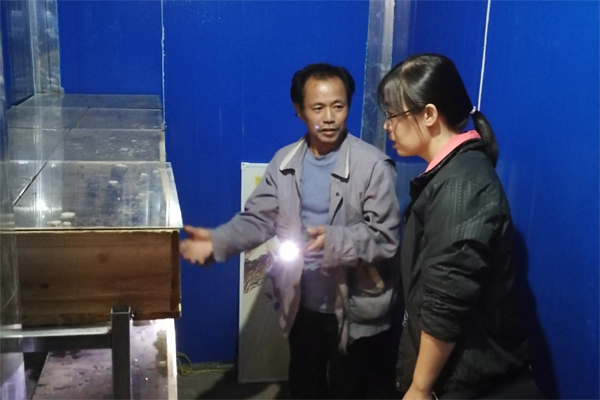 结对帮扶干部深入贫困户家中察看扶贫产业白玉蜗牛家庭养殖进展