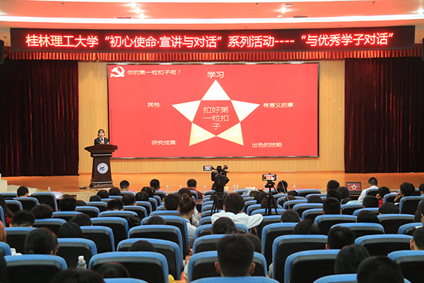 为充分发挥理论宣讲和先进典型示范引领作用,进一步拓展师生党员理论学习和思想教育的深度和广度,10月18日晚,由学校“不忘初心、牢记使命”主题教育领导小组办公室主办,学生工作部(处)承办的“初心使命•与优秀学子对话”首场宣讲会在图书馆报告厅举行,党委组织部、校团委相关负责人与240余名师生党员一同参加了宣讲会。