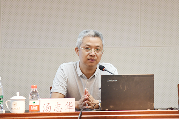 为庆祝新中国成立70周年,讲好中国故事,讲好中国共产党故事,进一步激发青年学生的爱国之情,强化爱国之志,扎实推进“不忘初心、牢记使命”主题教育,9月24日下午,“我和我的祖国——共和国故事进校园”百场主题宣讲活动在我校雁山校区行知楼A406会议室开展。广西师范大学马克思主义学院院长、博士生导师汤志华教授为我校师生作《从百年党史看党的初心和使命》主题宣讲报告,我校各学院党委副书记、辅导员、学生代表等百余名师生到场聆听。宣讲报告会由学校党委宣传部部长叶昊主持。