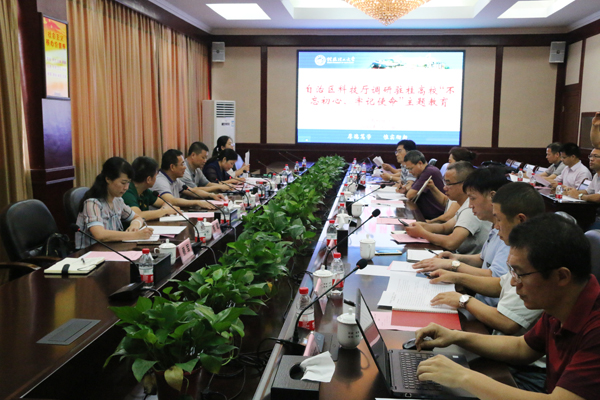 为进一步加强新时代党的建设,以党建引领科技创新发展,探究我区科技创新发展存在的瓶颈问题,着眼解决全区科技创新管理改革的实际问题,结合上级关于开展“不忘初心、牢记使命”主题教育的部署,7月17日,自治区科技厅“不忘初心、牢记使命”主题教育调研组第一组组长黎卫红一行到桂林调研驻桂高校,并在我校屏风校区教八楼三楼会议室召开主题教育座谈会。