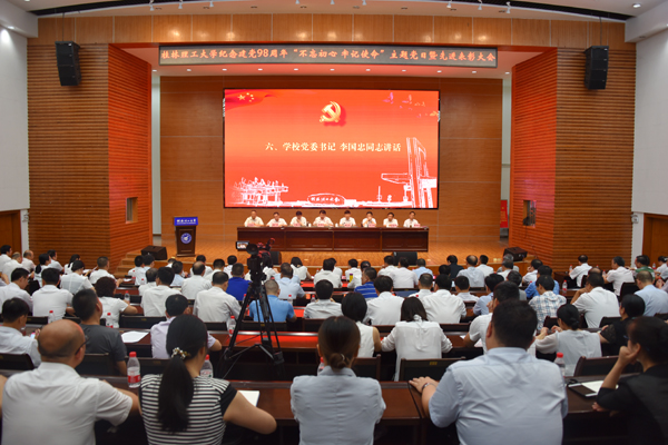 李国忠书记在讲话中深情回顾了中国共产党成立98年来的光辉历程和我校建校63年来走过的奋进之路,并就下一步抓好学校党建工作提出了四点要求。一是要进一步坚定“四个自信”,做新时代的奋斗者;二是要进一步强化党员意识,做新时代合格党员;三是要切实提高政治站位,积极筹备好“不忘初心、牢记使命”主题教育;四是要大力传承和弘扬“桂工精神”,努力推动学校发展再上新台阶。