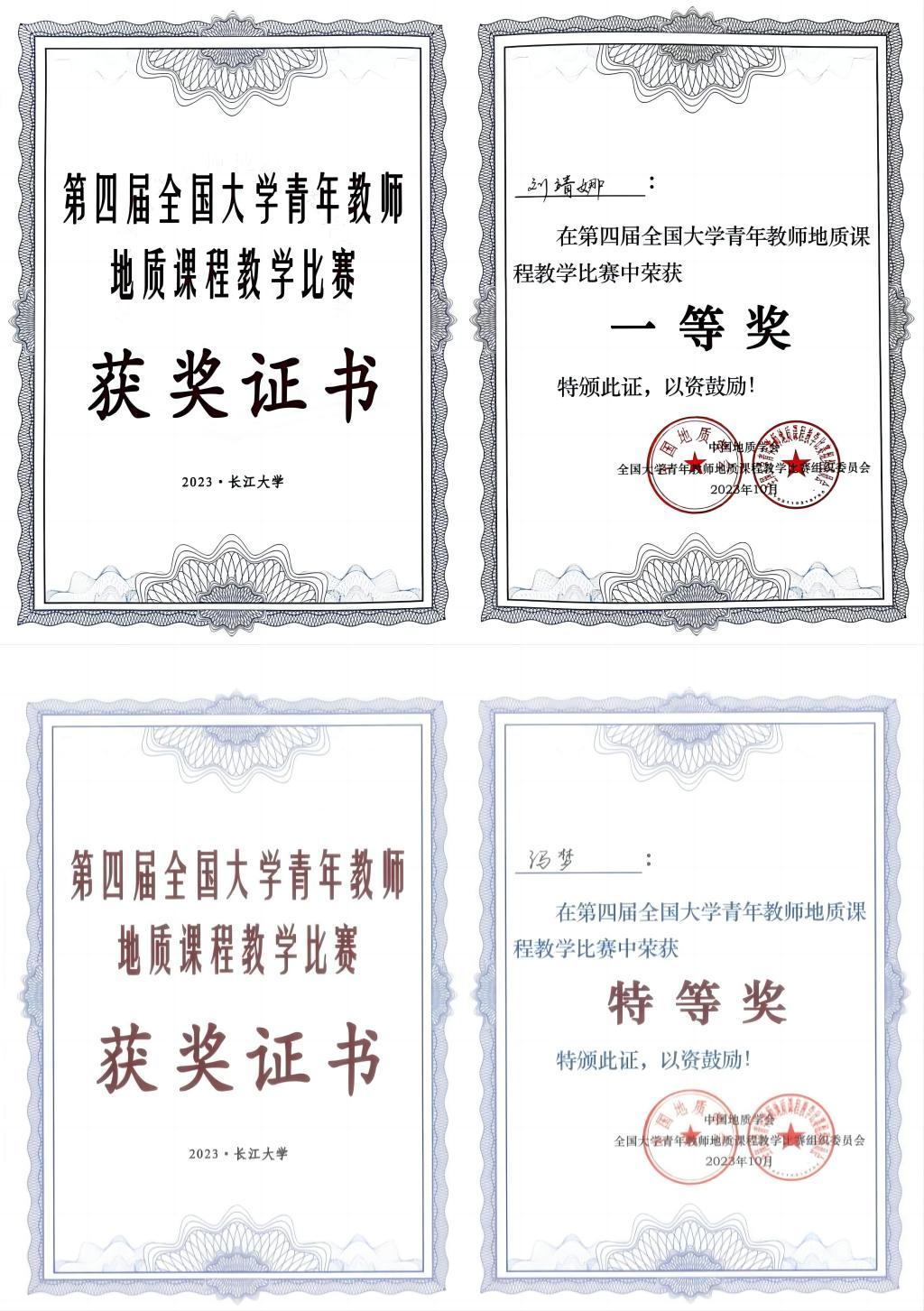 学院2名教师分别获全国大学青年教师地质课程教学比赛特等奖和一等奖