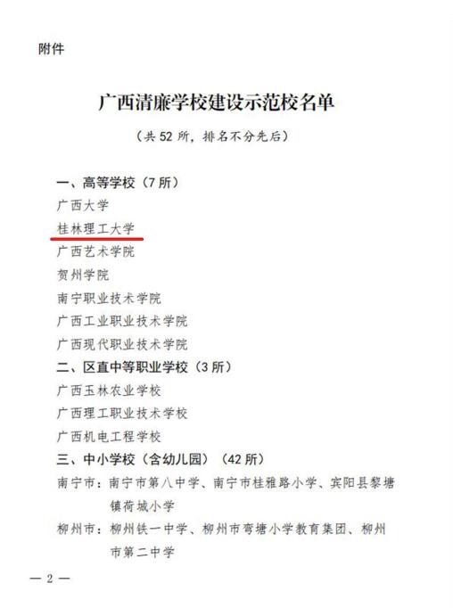 连续三年协助学校党委承办“广西高校清廉学校建设高峰论坛”,邀请高校党委书记、校长、纪委书记(派驻高校纪检监察组组长)33人次参加论坛,论坛成为广西清廉学校建设的一张“名片”,在区内外产生良好的社会反响。清廉学校建设3篇经验材料分别被人民网、《当代广西》《广西教育信息》采用。学校纪委揭榜挂帅承担“廉洁桂工”研究课题,提交的《“廉洁桂工”风气更正三年行动方案》成为学校党委行政的决策部署。升级改造廉政文化园,建成廉政教育馆,拓展形成校内校外廉政教育平台矩阵。开展“廉洁家访”、寄送“廉洁家书”、编印《家风读本》,营造浓厚家庭助廉氛围。积极打造廉洁文化精品,在第八届高校廉洁教育系列活动作品竞赛中,获全国优秀作品2件、全区优秀作品13件。指导拍摄舞台短剧《村里来了菩萨兵》,生动再现红军过全州的廉洁故事,获自治区纪委监委推荐参加“包公杯”微视频比赛。近年来,先后组织学校重点领域、关键岗位的部门“一把手”到广西党风廉政教育基地(桂林)、广西壮族自治区英山监狱等地开展警示教育。