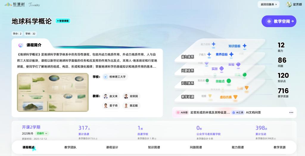在新一代人工智能技术与高等教育创新深度融合的时代浪潮中,技术革新已不再是教育发展的“辅助工具”,而是推动高等教育完成从“数字化积累”到“数智化重塑”的重要驱动力。在此背景下,桂林理工大学主动锚定新时代教育变革方向,将人工智能技术提升至学校战略发展高度,推动其全面渗透人才培养方案修订、课程数智化建设、搭建校级AI知识创新中心、打造教学应用场景等,不断赋能学校教育教学提质增效。