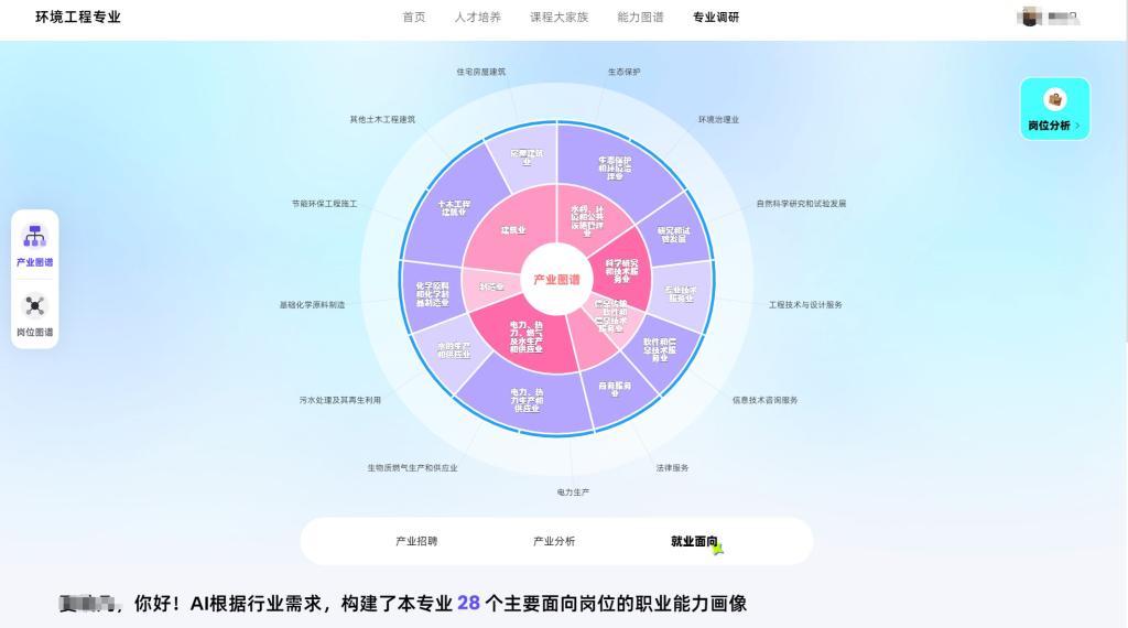 学校积极推动人工智能技术在高等教育领域落地与应用。例如,针对地质类专业“实践高危、成本高”难题,开发沉浸式智慧矿山实践平台,以广西大厂锡多金属矿田为原型构建1∶1000比例实体与数字沙盘,结合1∶1实景复制的地下坑道模型,串联14个沉浸式教学场景,让学生“零安全风险”完成矿产勘查、地质灾害防治等实践训练。针对生态环保类专业人才培养痛点,以生态环保现代产业学院深度融合“行业+岗位+专业+课程+AI应用”技术框架,构建了“全维度调研-动态能力校准-个性教学适配-AI生态赋能”的生态环保类专业人才培养新范式,为高原学科建设提供可复制、可推广的“桂工方案”。