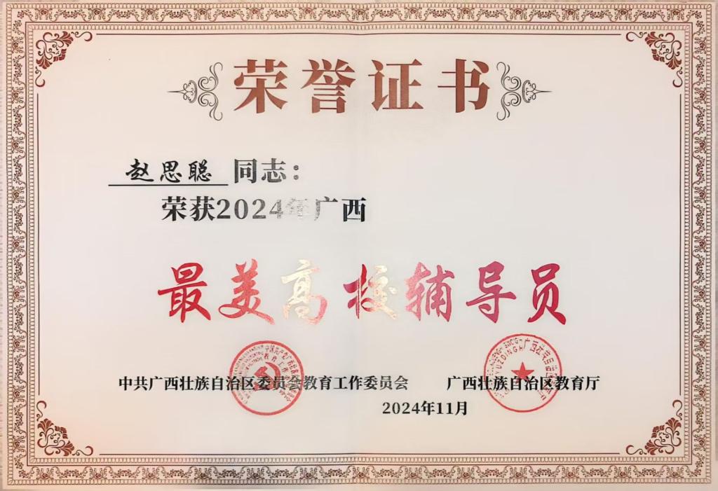我校辅导员赵思聪获广西“最美高校辅导员”