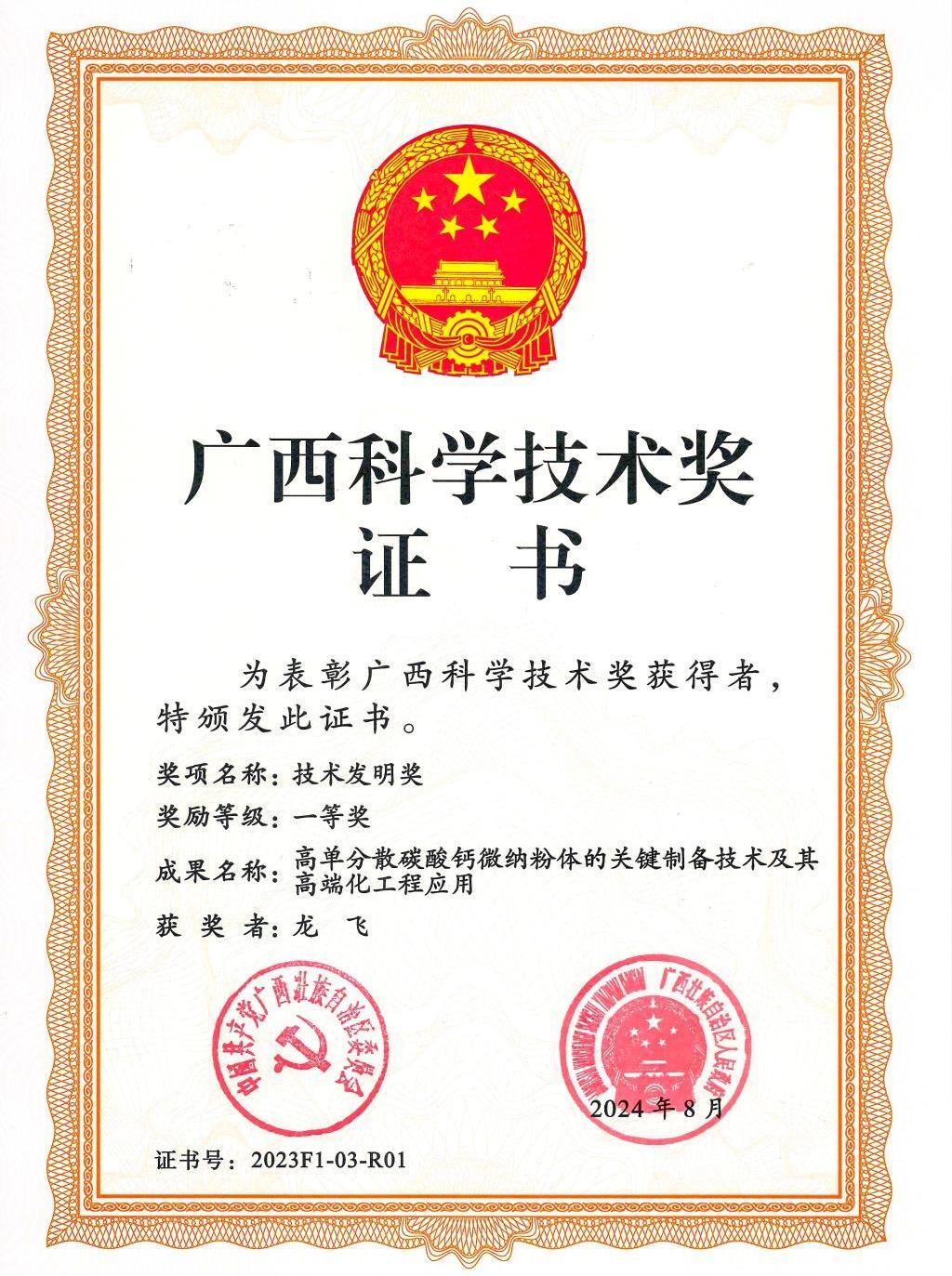 党外代表人士龙飞教授项目成果获广西科学技术发明奖一等奖