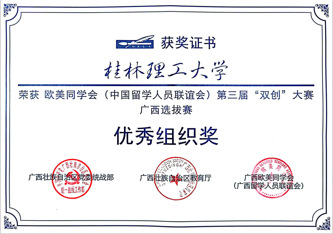 欧美同学会荣获“双创”大赛广西选拔赛优秀组织奖