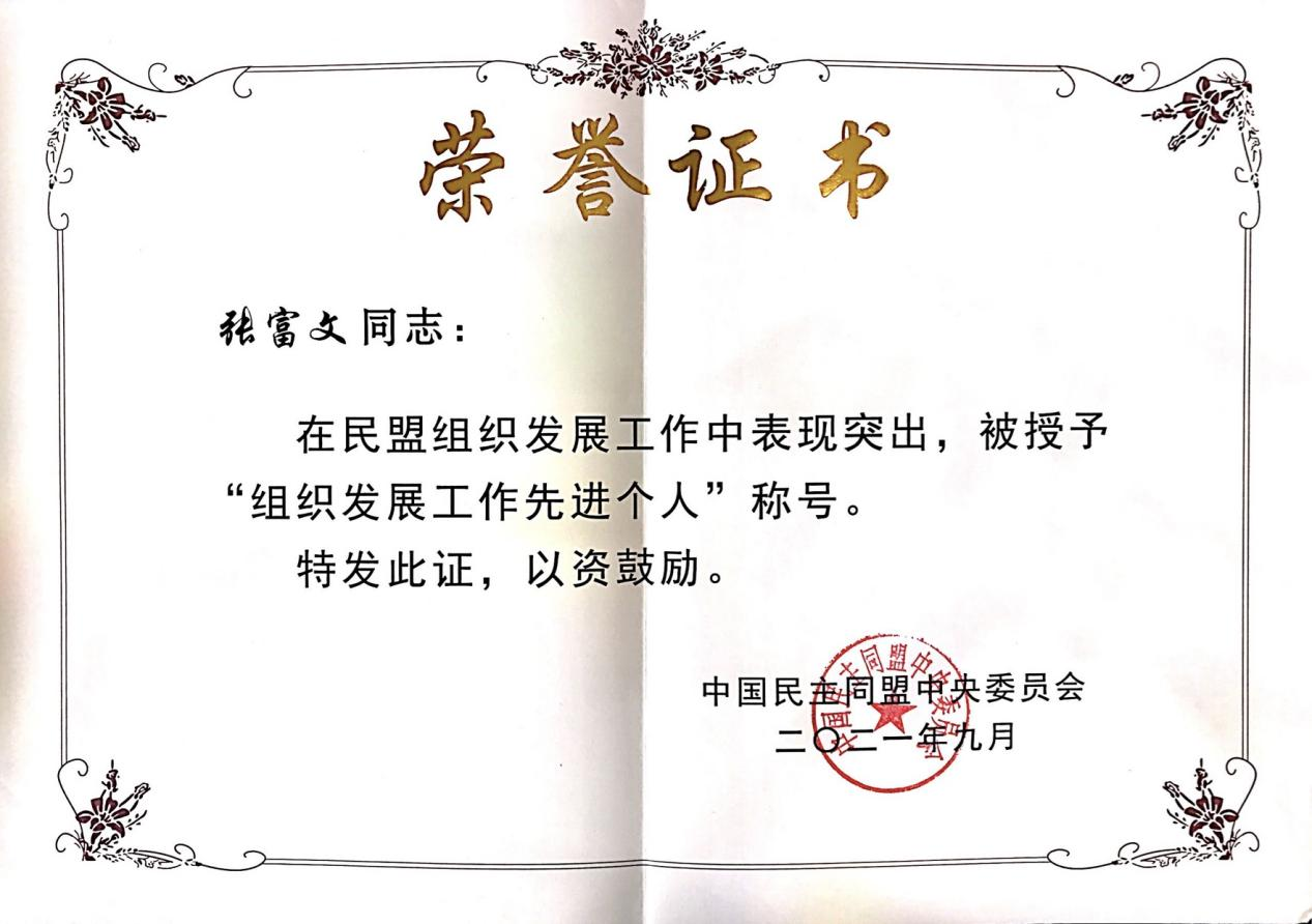 民盟盟员张富文荣获民盟中央先进个人表彰