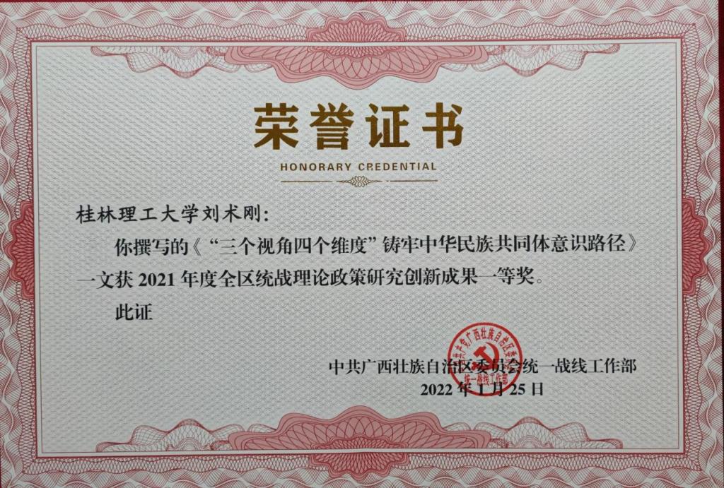 学校坚持党对民族工作的全面领导,出台《推进建设铸牢中华民族共同体意识示范校实施方案》等制度文件,建成民族团结园,开设《中华民族共同体概论》必修课等,系统谋划新时代民族工作。深入实施民族团结进步创建,常态化开展“民族团结进步宣传月”及广西“三月三”等特色品牌活动,累计覆盖各族师生近万人次,在常态化宣传教育中做好意识形态工作,引导师生不断增进“五个认同”,学校获评自治区第六批民族团结进步示范校,1人获评自治区民族团结进步模范个人,并积极助力桂林市创建全国民族团结进步示范市。充分发挥学科人才优势,为创建工作注入深厚内涵,李建卫老师创作的民族团结主题雕塑落成于象山公园,莫田娟老师作词作曲的《石榴籽之歌》荣获桂林市民族团结优秀原创歌曲。理论研究平台建设同步推进,挂牌成立桂林市铸牢中华民族共同体意识理论研究基地,组织专家学者开展相关研究,近5年获得民族类课题110余项、发布论文200余篇、出版专著7本,多项成果荣获国家民委社会科学研究成果奖、自治区民宗委政策理论创新奖、自治区民宗委优秀调研成果奖等,形成了实践与理论互促共进的生动局面。